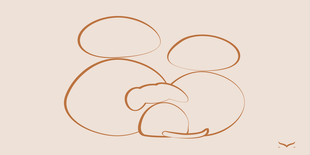 Deze prints vangen dat gevoel in abstracte portretten van twee personen met hond of kat, of een gezin van drie of vier personen